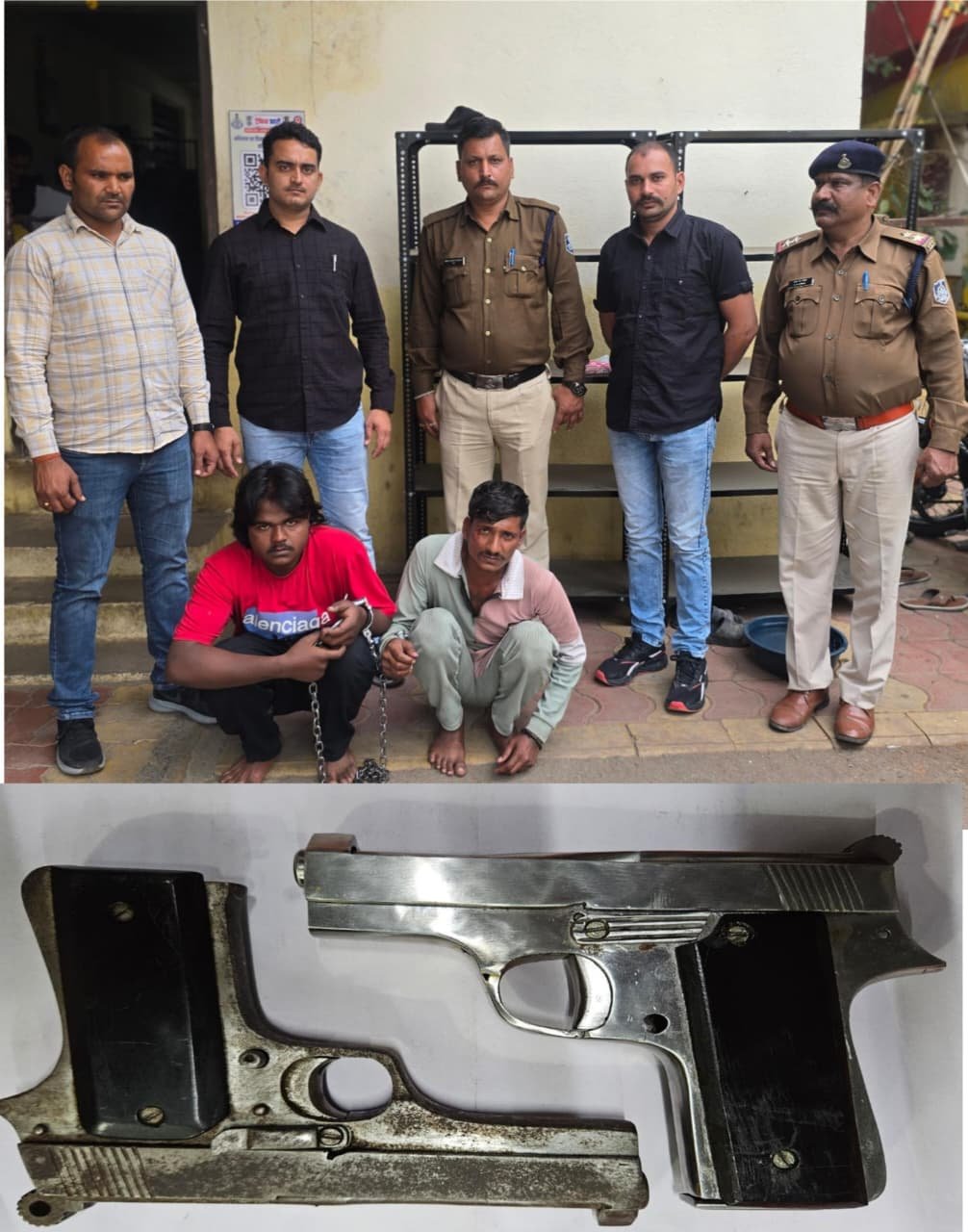 जिलाबदर अवधि में बदमाश प्रिंस राठौर साथी लक्कु कहार सहित गिरफ्तार, दो पिस्टल के साथ धराया।