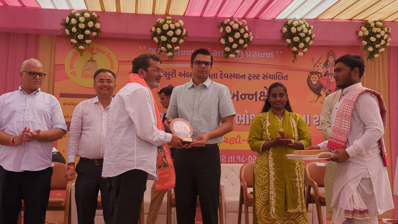 मां अम्बा जी मंदिर में इंदौर के जितेन्द्र त्रिपाठी (बाबा) को कलेक्टर ने किया सम्मानित
